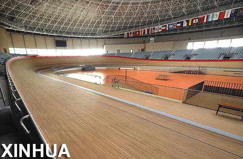 Esta foto muestra la pista del Velódromo de Laoshan. |